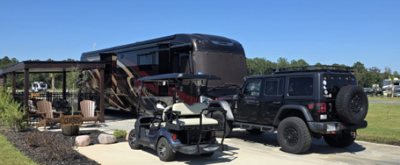 New resort that is continuing to build out the full vision. Generous sized sites that are big rig friendly, and most have extra parking ...